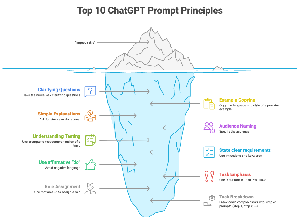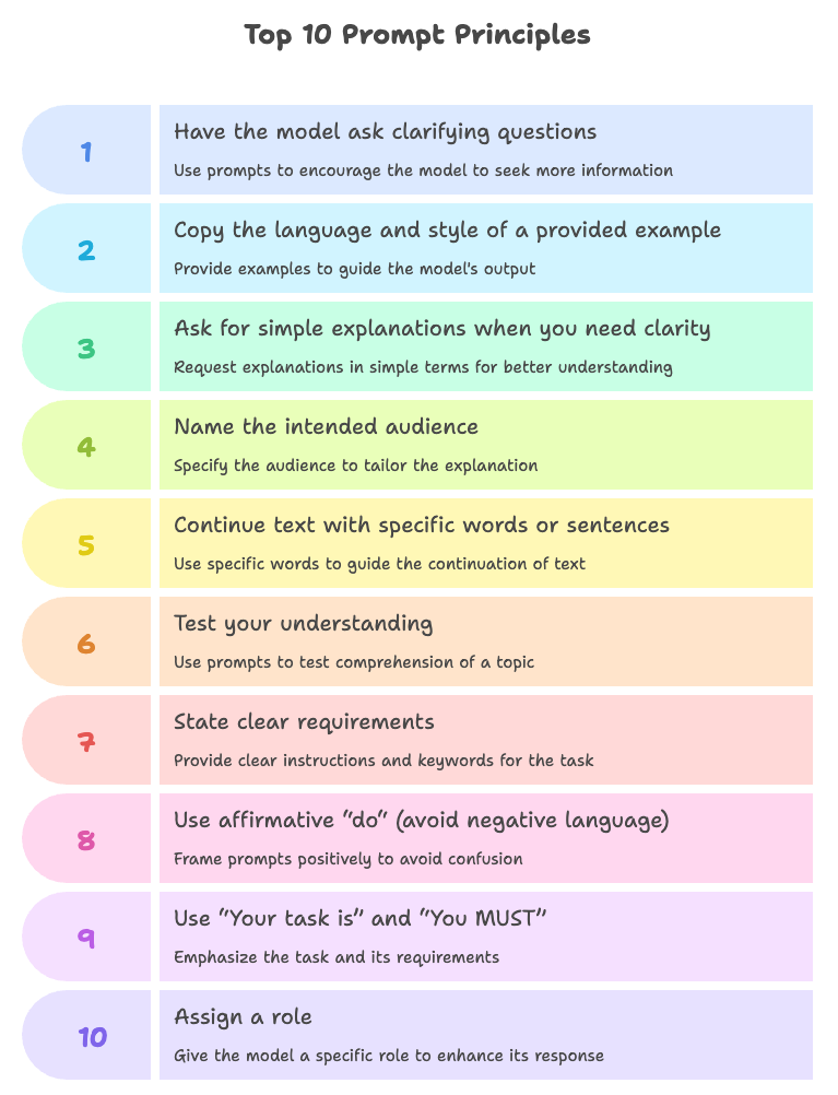 I took the top 10 ChatGPT prompt principles and turned them into a visual using this tool. The result was good!