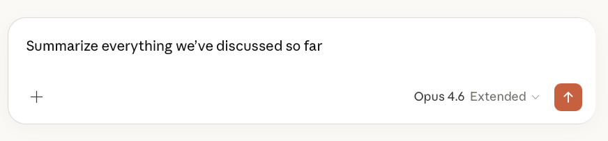 When a conversation starts getting long → ask Claude: “Summarize everything we’ve discussed so far” → copy the summary → open a new chat → paste it as your first message → start fresh