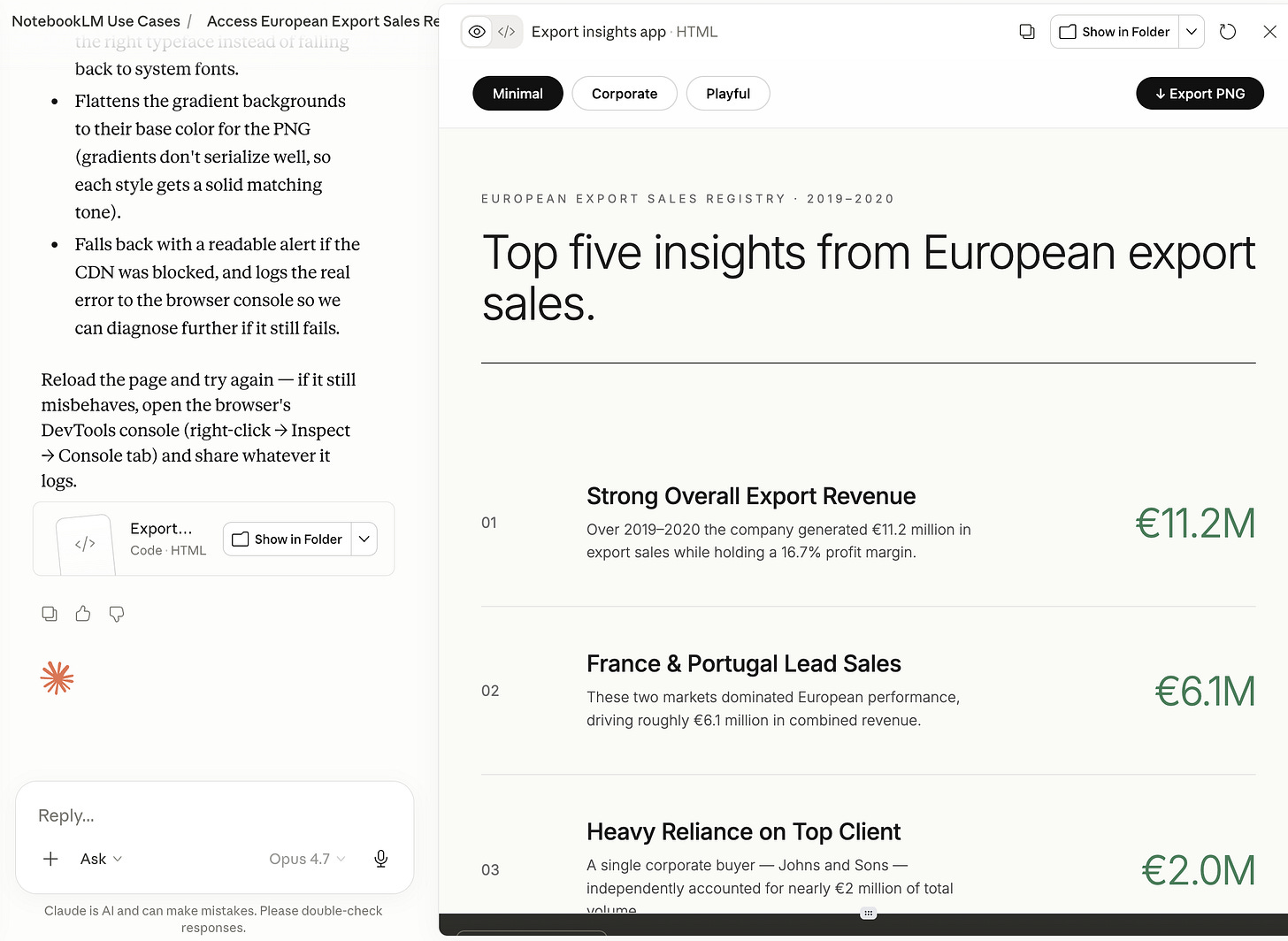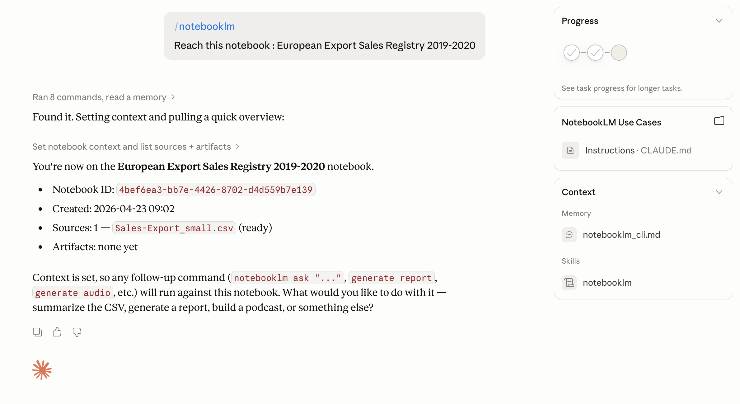 /notebooklm Reach this notebook: European Export Sales Registry 2019-2020Cowork now has read access to every source and every insight NotebookLM found.