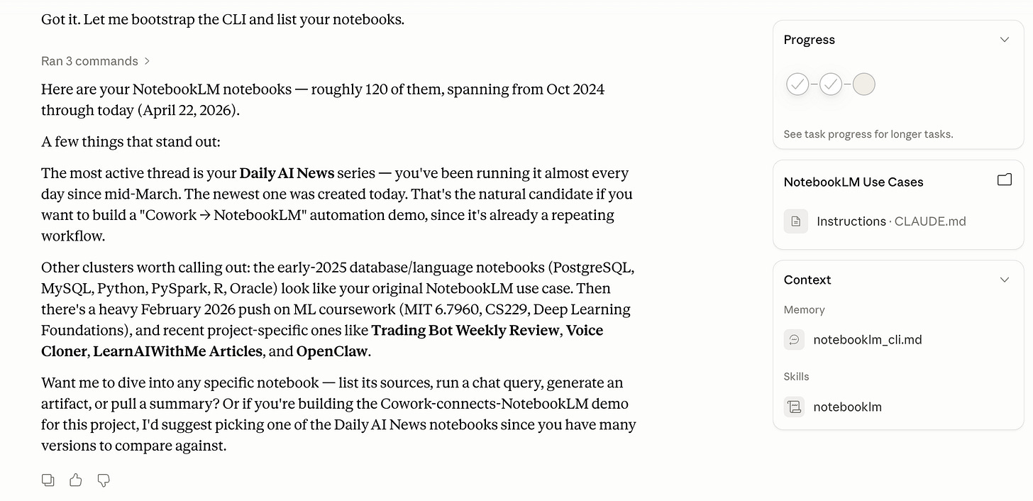 Most people use NotebookLM and Claude Cowork separately.