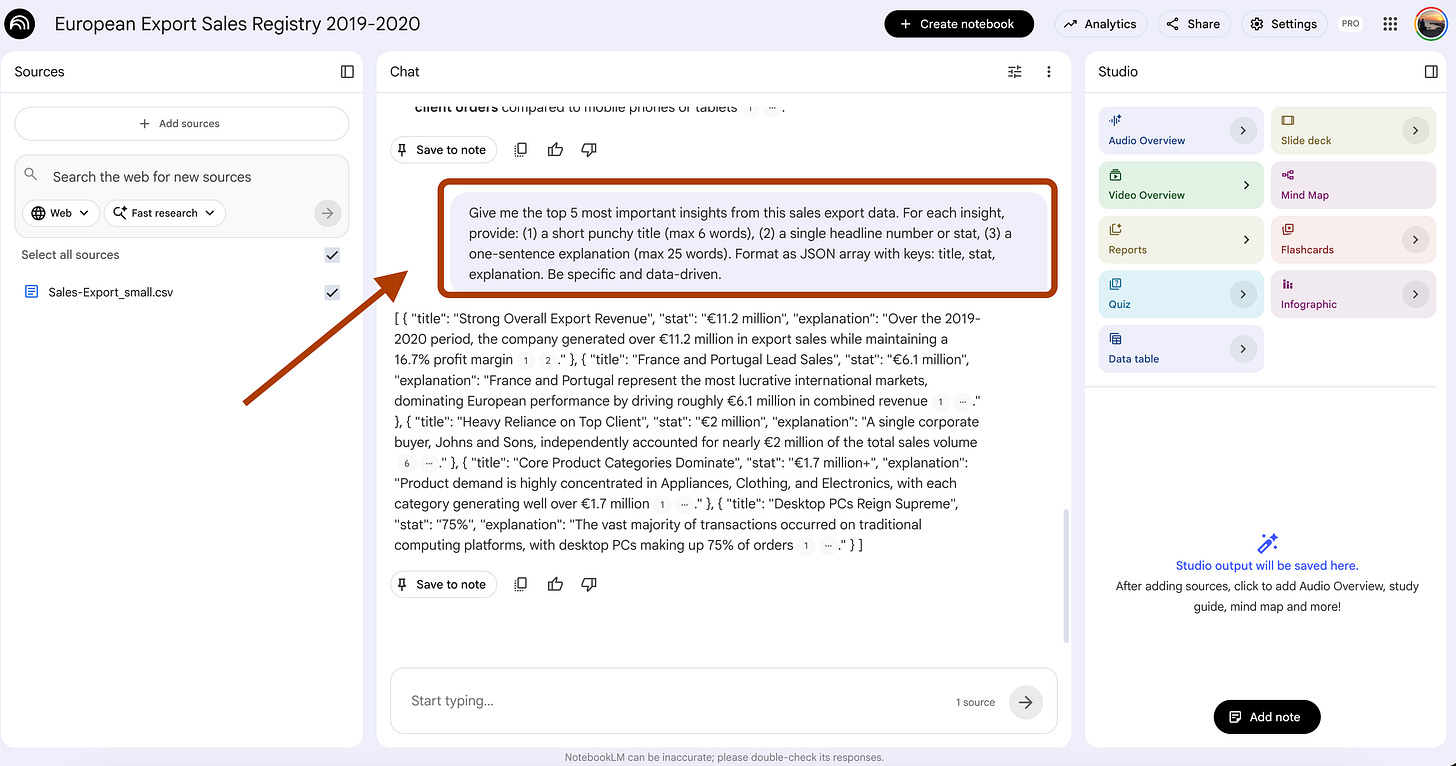 Step 3. Ask NotebookLM to find the patterns