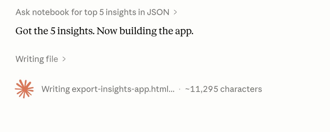 After getting the insights, it is now building the app.
