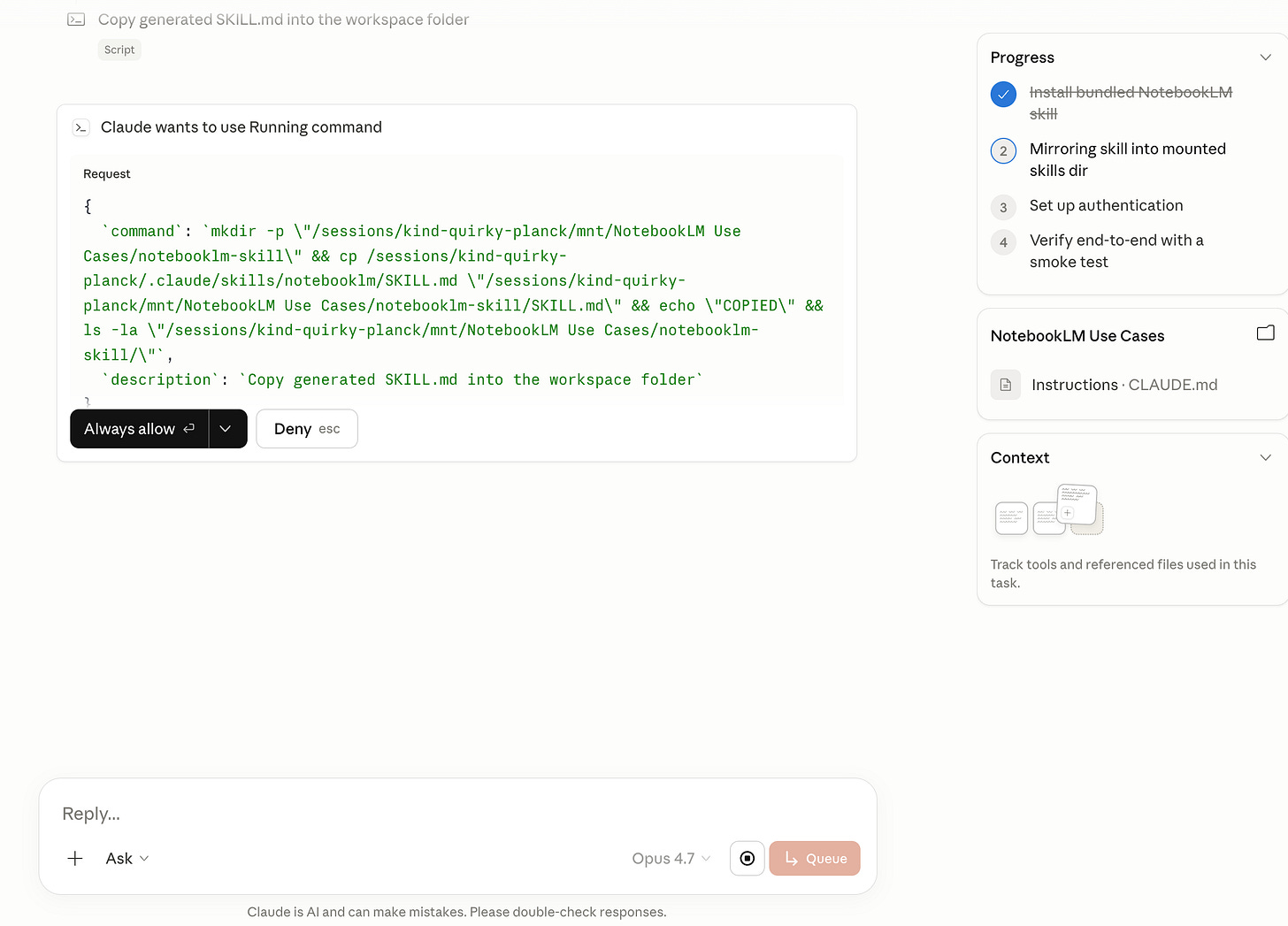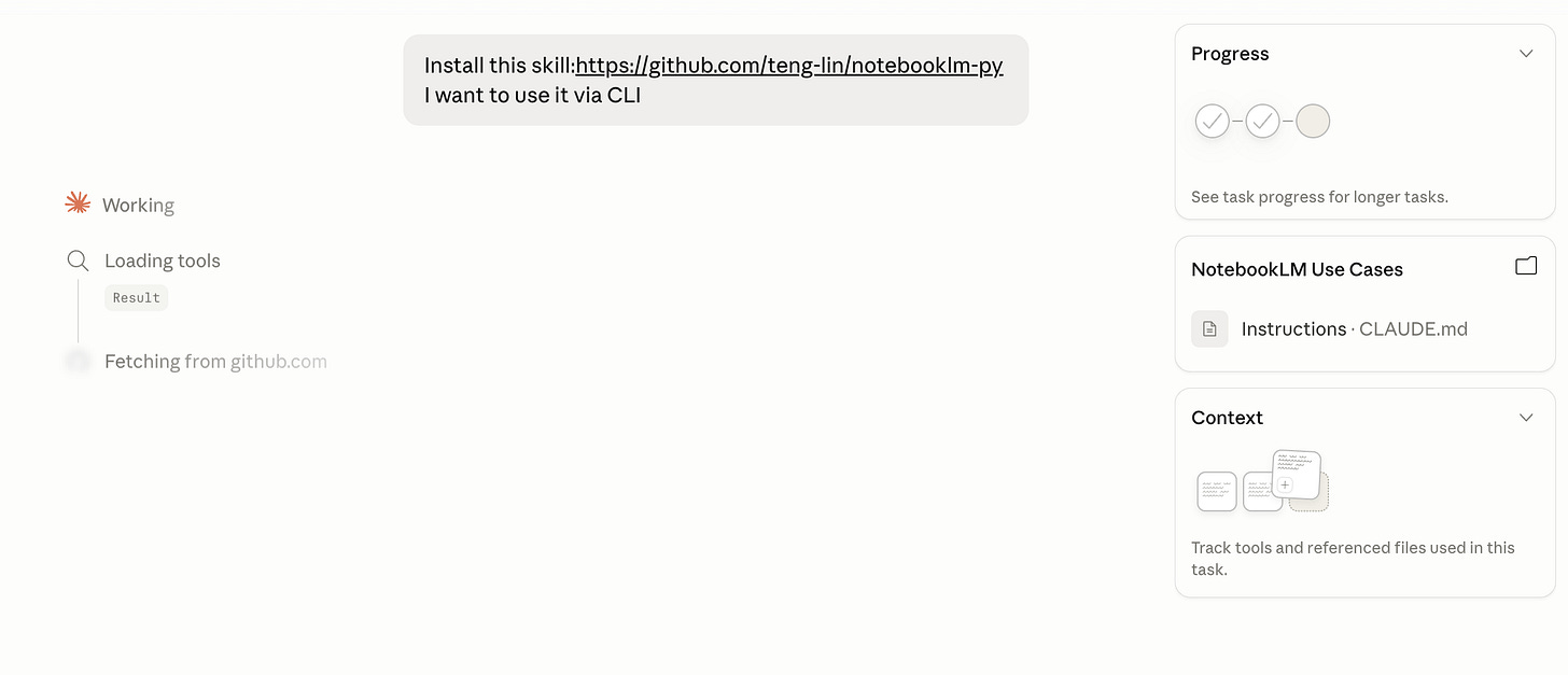 Step 4. Trigger the NotebookLM skill in Cowork