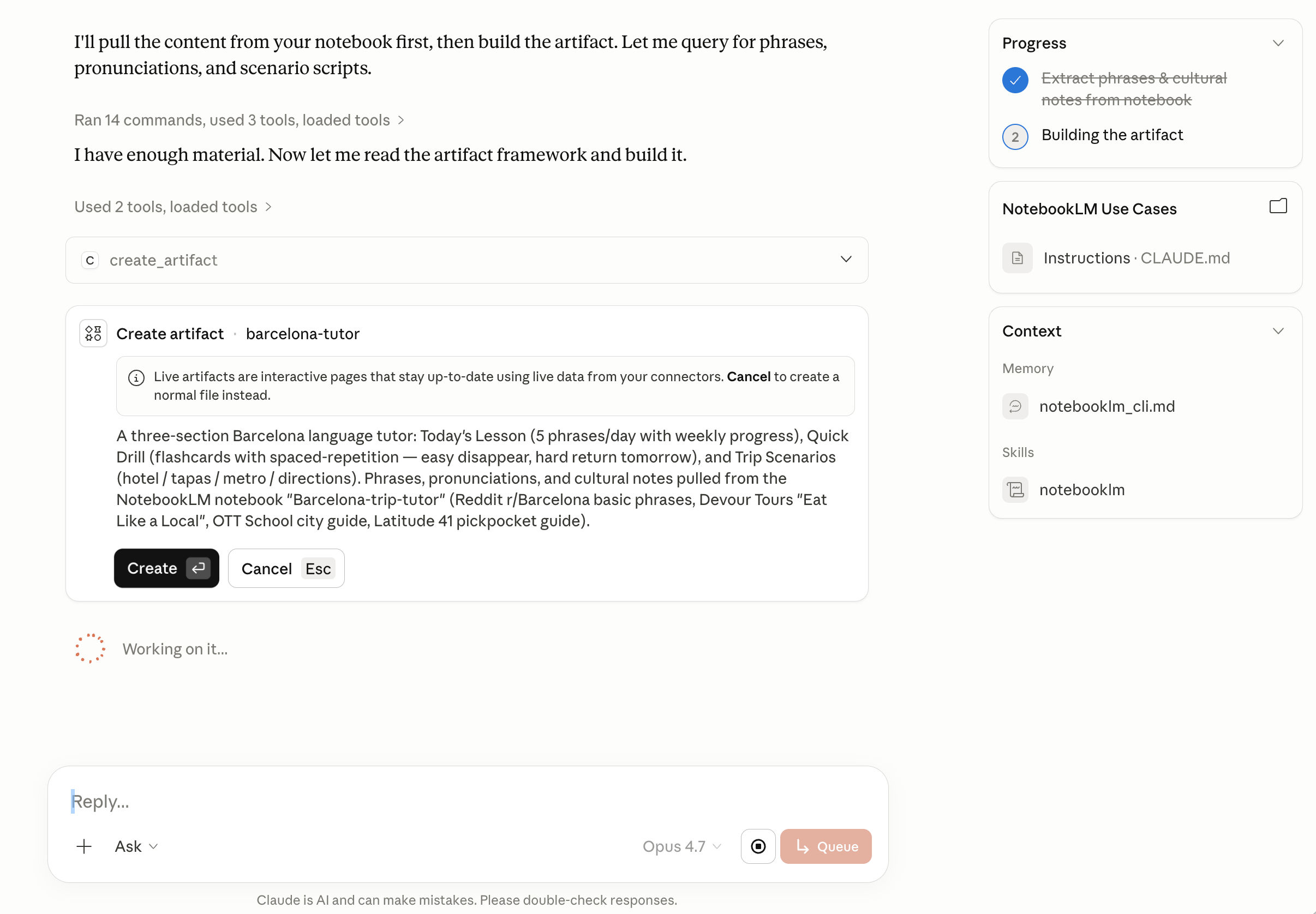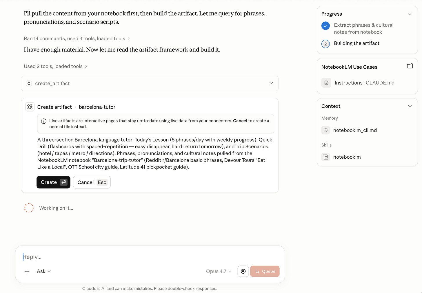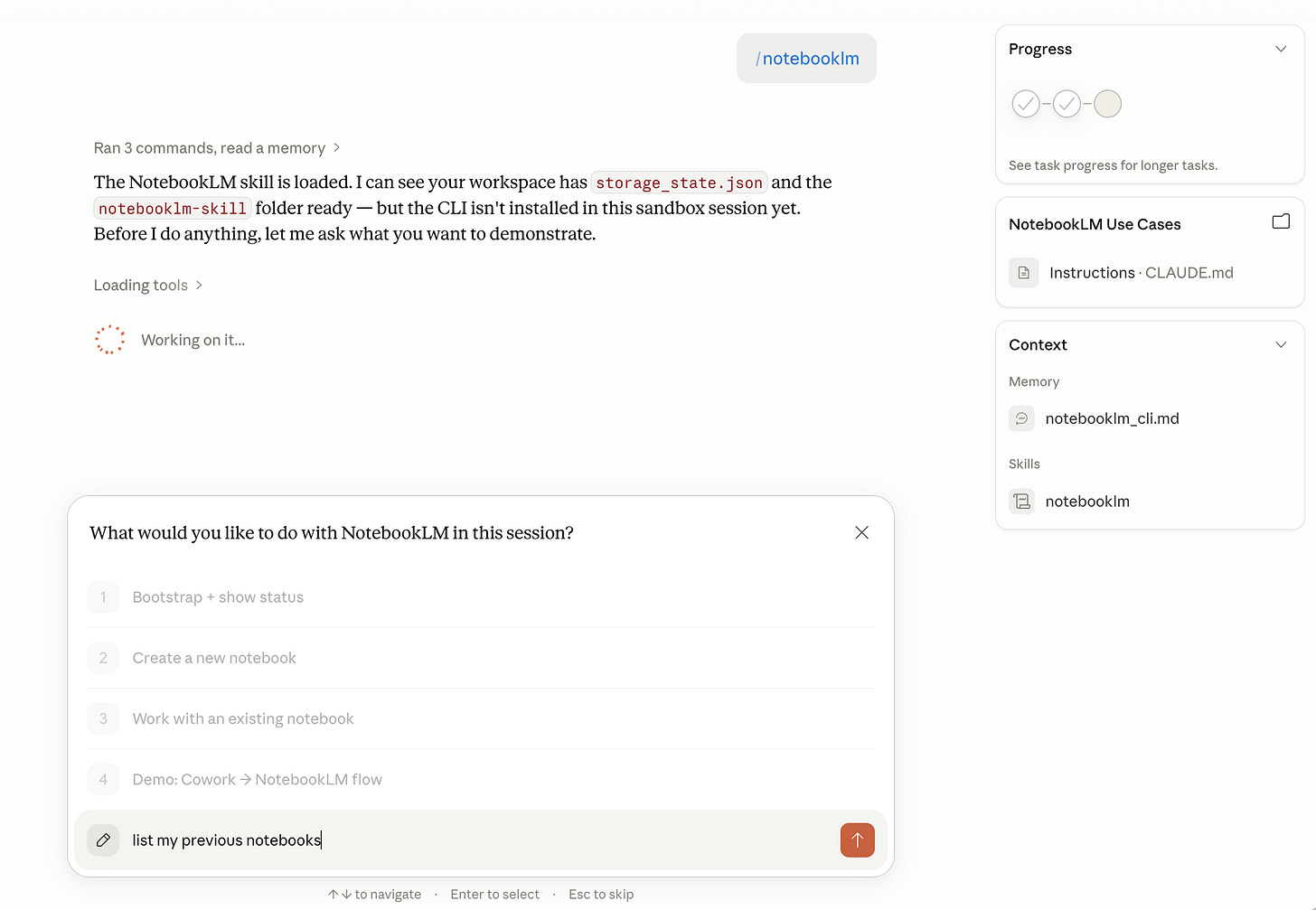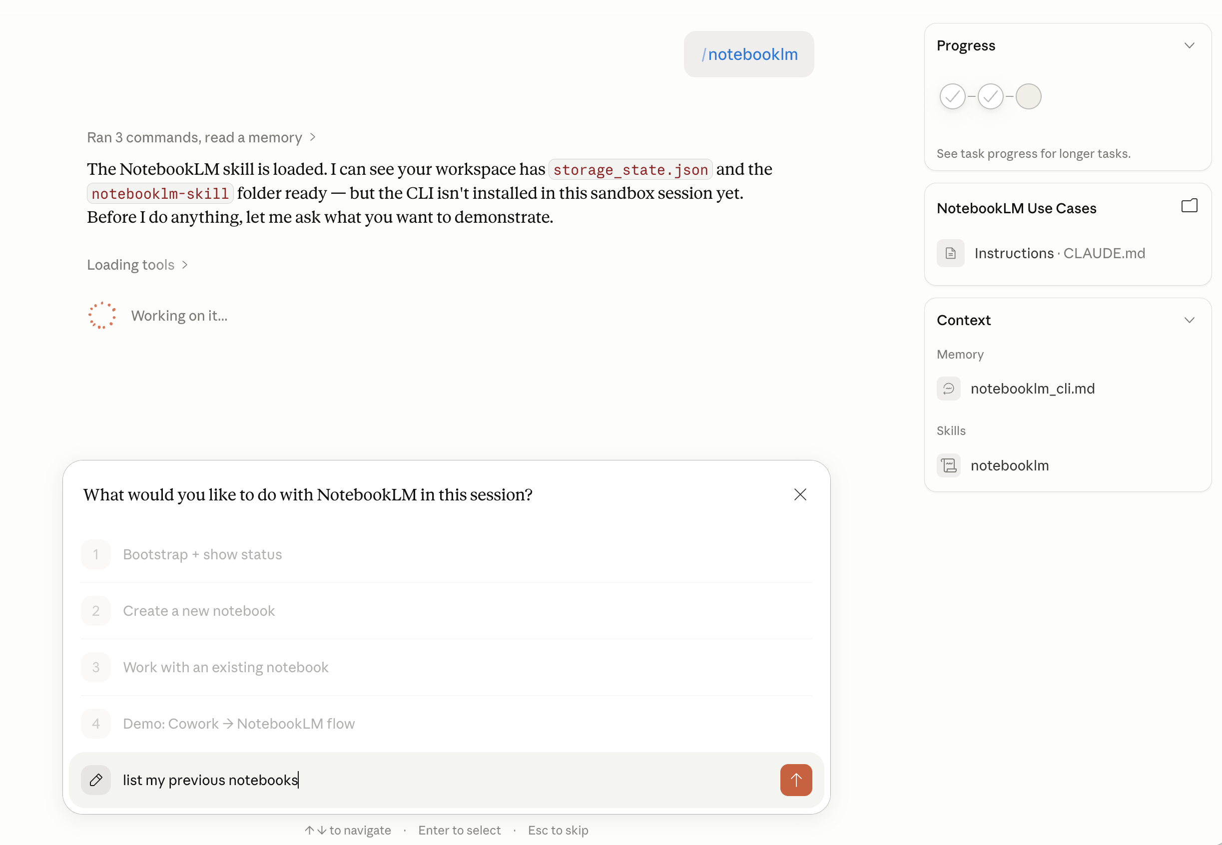 Time to test the skill. Type /notebooklm