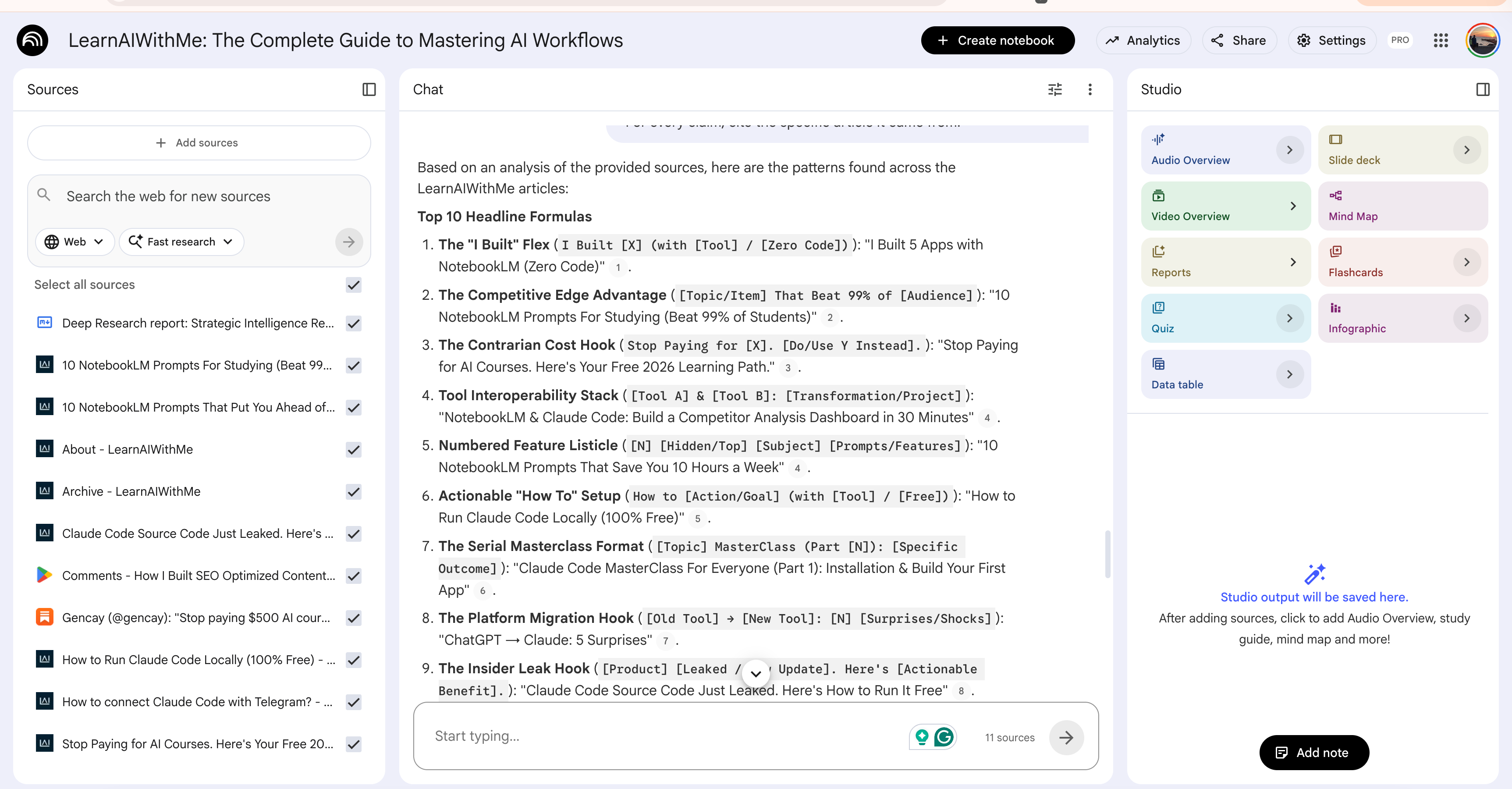 For every claim, cite the specific article it came from.NotebookLM returns grounded patterns.