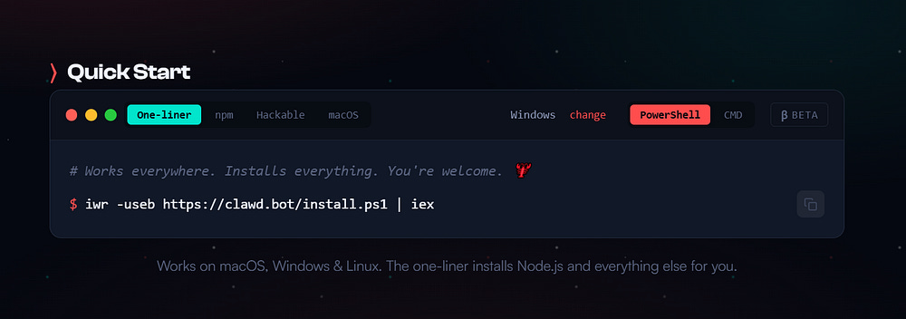 Step 1: Go to the Clawdbot page and choose the operating system for your installation.