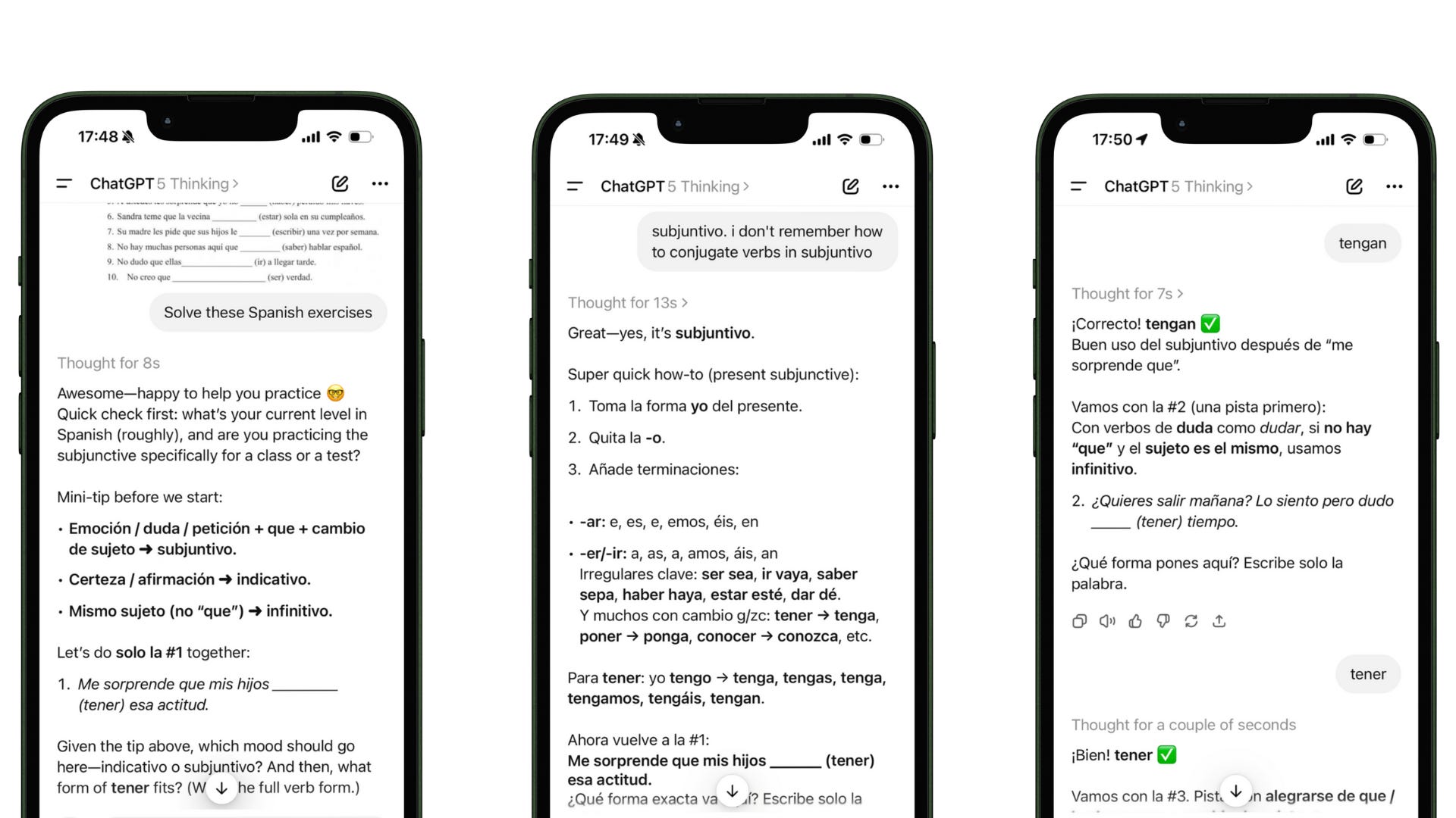 Once study mode is enabled, even if you ask ChatGPT to solve your language exercises, it won’t give you quick answers, but step-by-step guidance for solving your exercises.
