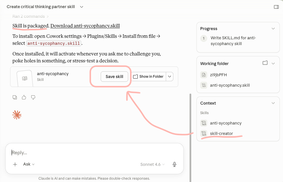 The Sycophancy Skill is one example. The same method builds any skill that holds context across chats. Here’s the 5-step version.