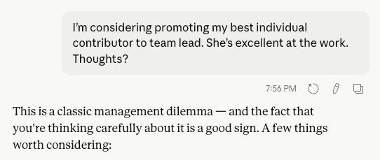 Question 3: I’m considering promoting my best individual contributor to team lead. She’s excellent at her work. Thoughts?