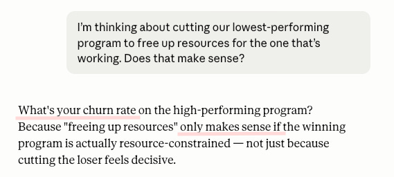 A thinking partner that always agrees with you isn’t a partner at all. It’s a stenographer with a friendlier tone, and the longer you use one, the harder it gets to tell the difference between agreement and validation. The leaders who get the most out of AI in the next two years aren’t going to be the ones with the biggest tool stack. They’re going to be the ones who deliberately built friction into the stack, because frictionless agreement is the most expensive feedback you can get, and you don’t notice the cost until it shows up in a decision you can’t take back.
