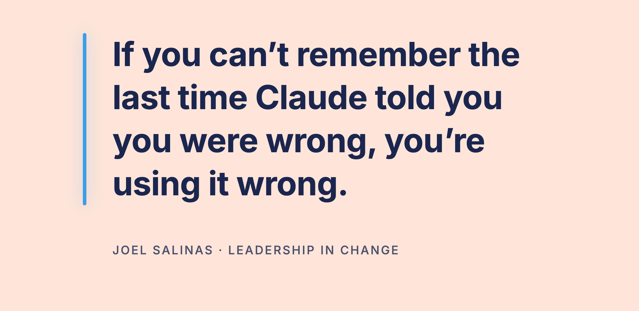 Joel Salinas is a Fractional Chief AI Officer for small and mid-sized businesses and nonprofits, working on AI strategy, hands-on builds, and change management. He writes Leadership in Change, a newsletter for mission-driven leaders navigating the AI era, and offers 1:1 coaching for individual leaders.
